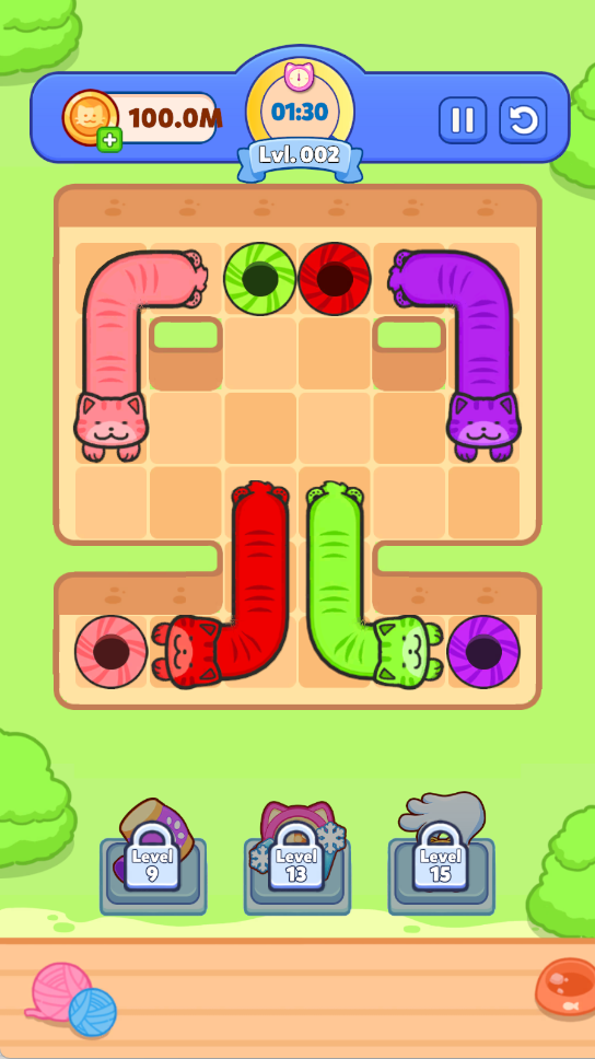 1、观察关卡布局与猫咪、出口的颜色分布,预判每只猫咪的大致路径,避免盲目操作浪费时间。