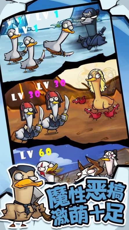 6、拖动两个相同的鸭子到一起,就能合体成为更高等级的鸭战士!