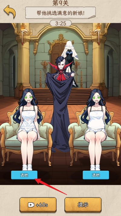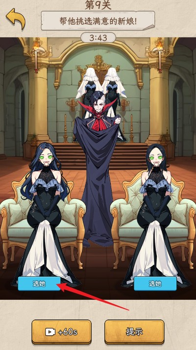 1.上滑新娘的盖头,选择獠牙的