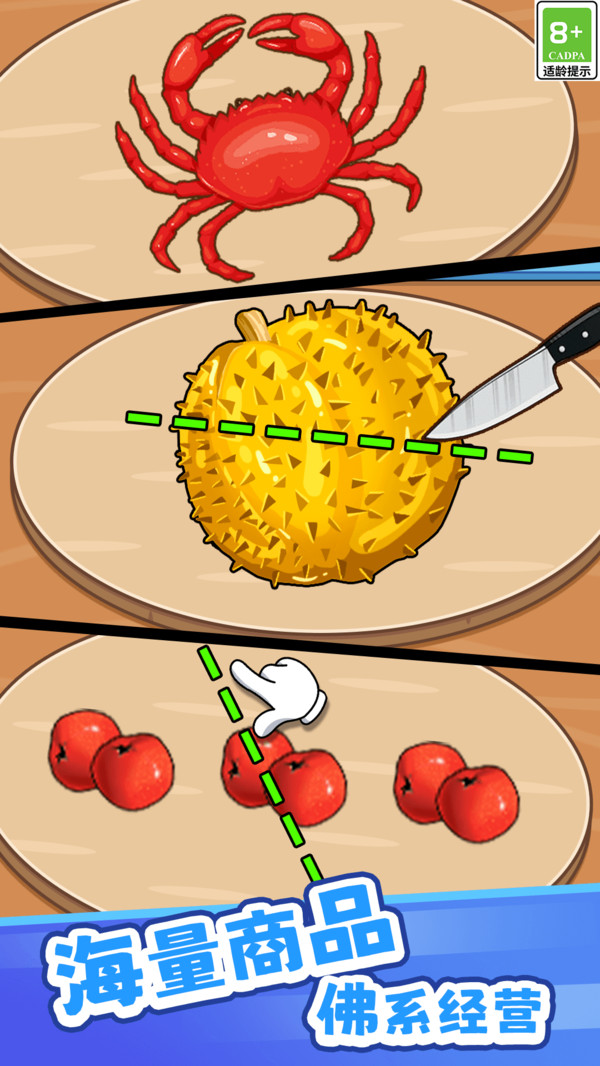 完美切一切是一款以切割各种食物为背景的免费模拟经营休闲解压游戏,玩家是可以在这里去成为一个切割高手的,你是能够在这里去不断的来切割的,还有各种各样的服务都是可以去使用的,都是非常的考验你的逆向思维的。其中的玩家可以在游戏中放松心情,享受切割的乐趣,忘却生活中的压力和烦恼。