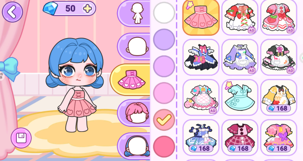 4、形象装扮界面中,先根据现有资源选择可免费使用的服饰,搭配发型、发色等元素打造风格统一的形象。