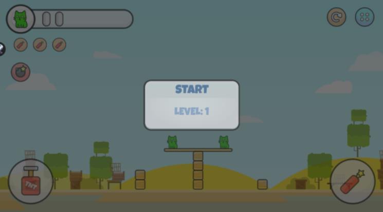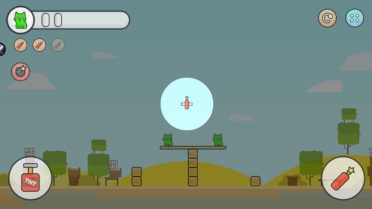 1.核心闯关模式以“清除所有猫咪”为目标,玩家通过点击或拖拽操作放置炸弹,倒计时结束后自动引爆,需确保爆炸范围覆盖所有目标。
