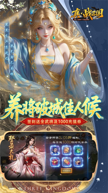 《真战三国》一款以三国乱世为背景的战争策略类手游,烽烟蔽日山河碎,豪杰横空乱世生!邀您执剑入局,亲赴万箭齐发的赤壁、铁甲轰鸣的长坂坡,在史诗级古战场上书写传奇!实时国战将九州烽火点燃,百万雄师在同一屏幕上激烈厮杀,云梯和撞车破城而入,洛阳、许昌、成都,每一座城池都是血与火交织的勋章。更有经典战役在此复刻,领地经营中暗藏玄机。通过升星、天赋、宝物和神器等多维度的养成方式,打造一支无与伦比的军团。在乱世之中,是选择偏安一隅,还是勇往直前逐鹿中原?踏入这片壮丽的大地图,用刀剑书写属于你的三国传奇,一统山河就在今朝!