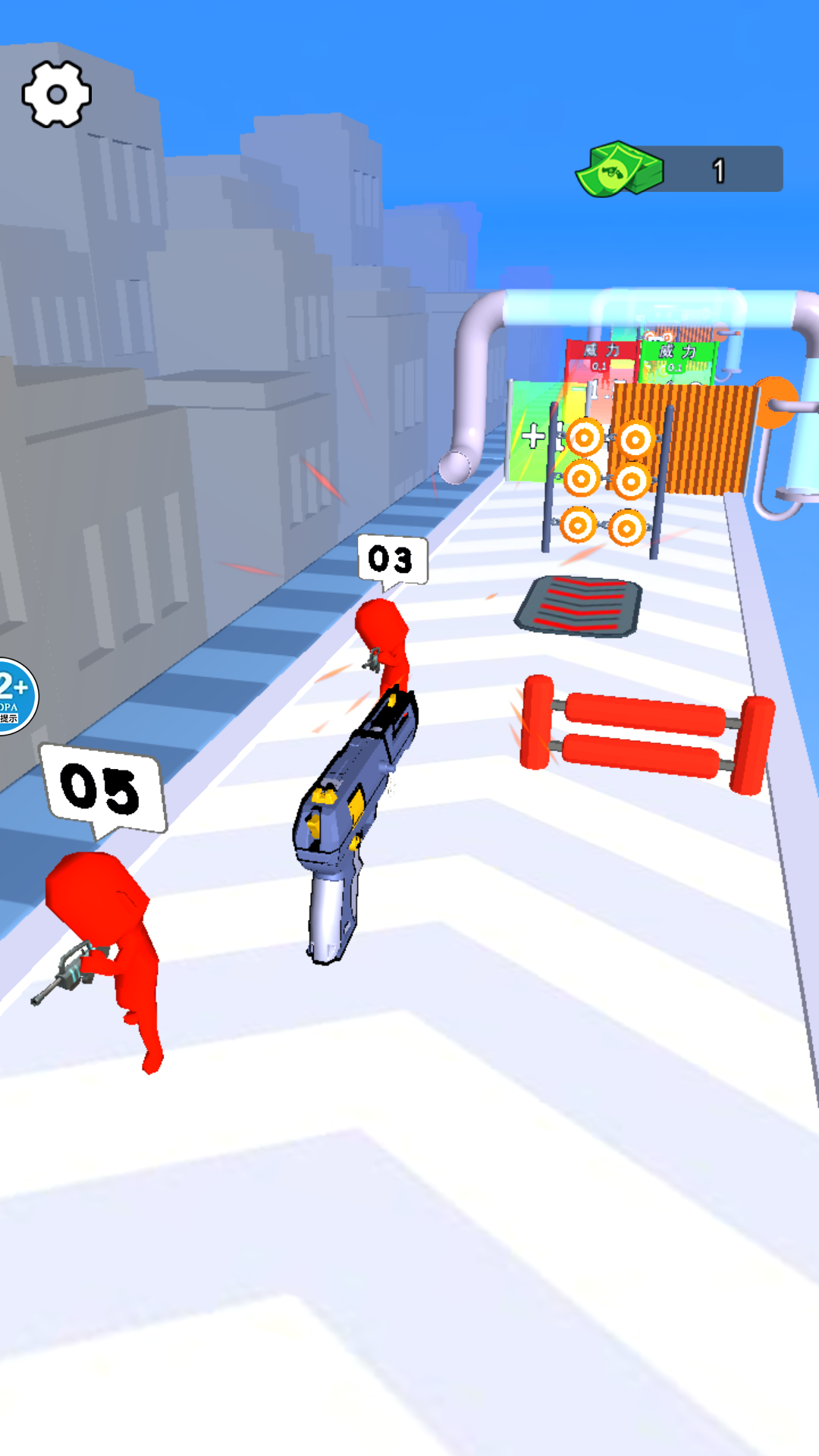 1、玩家将在高速跑酷过程中,实时拾取并即时组装分散于赛道的枪械部件。