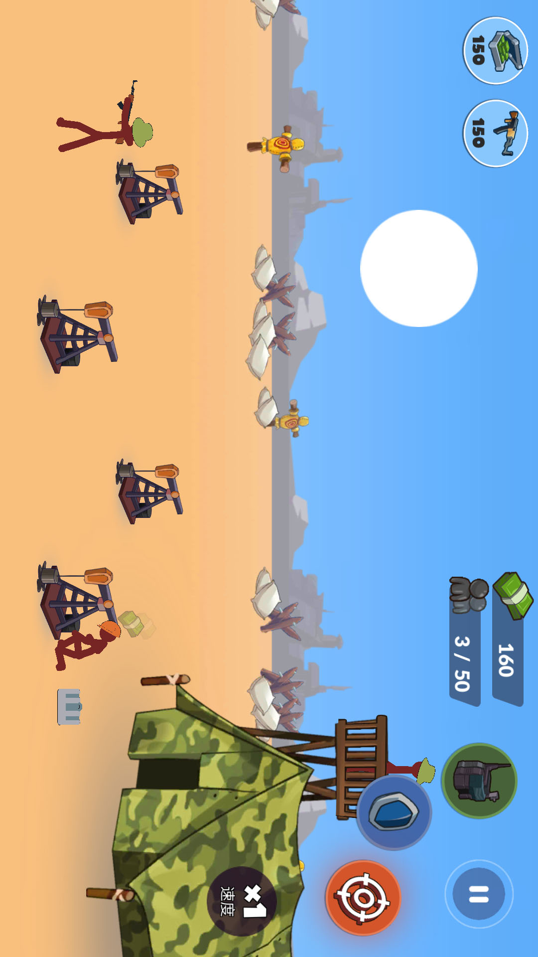 火柴人王国大战这是一款塔防策略类游戏,你需要放置守卫来抵御敌人的进攻,你需要消灭这些入侵的敌人,游戏里强化升级自己的守卫来提升自己的战斗力哦,游戏里超大的地图玩起来非常棒哦,越往后关卡的难度越高哦,可以说是老少皆宜哦,喜欢的快来下载吧!