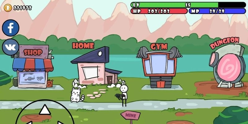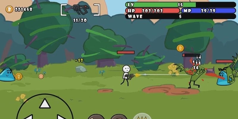 1、使用左下角按键控制移动,通过虚拟摇杆精确控制角色移动方向。