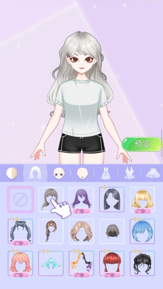 1、搭配发型时,先点击目标发型样式完成更换,再点击右侧 “预览” 按钮查看整体效果,若风格不契合,可快速切换其他发型,确保发型与后续装扮协调。