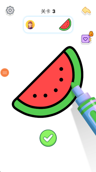 1.如下图所示,玩家需要根据画面上方的示例图进行绘画与涂色。