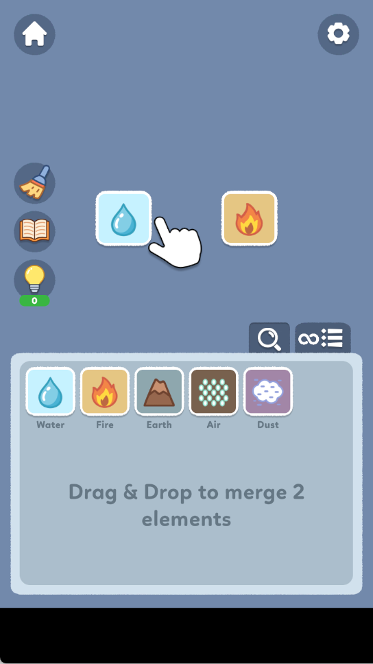 1. 核心玩法集中于元素的自由操控与高阶融合,例如将火与土结合生成熔岩,再用水去冷却它形成新的陆地。