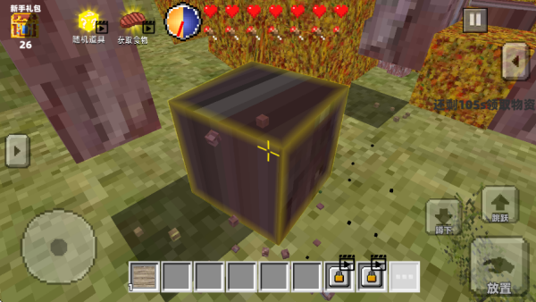 3.将光标移动到树木、石头等物体上,就可以自动进行采集。收集更多的素材,将这个世界改造成你喜欢的样子吧!