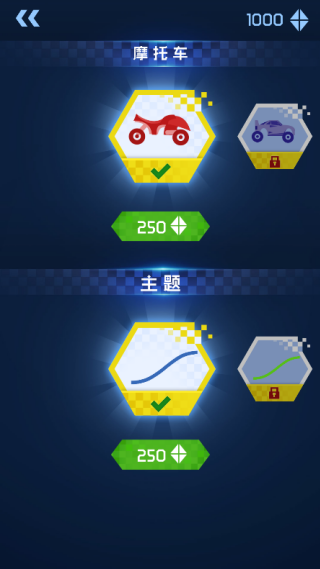 1.收集沿途的金币来解锁性能更加好的赛车,能让你的控制变得简单一下,跑的更远。