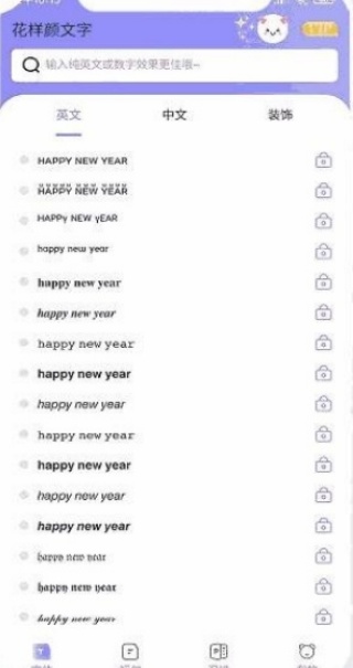 1、在字体的英文页面,有多种不同的字体,需要解锁后才可以使用;