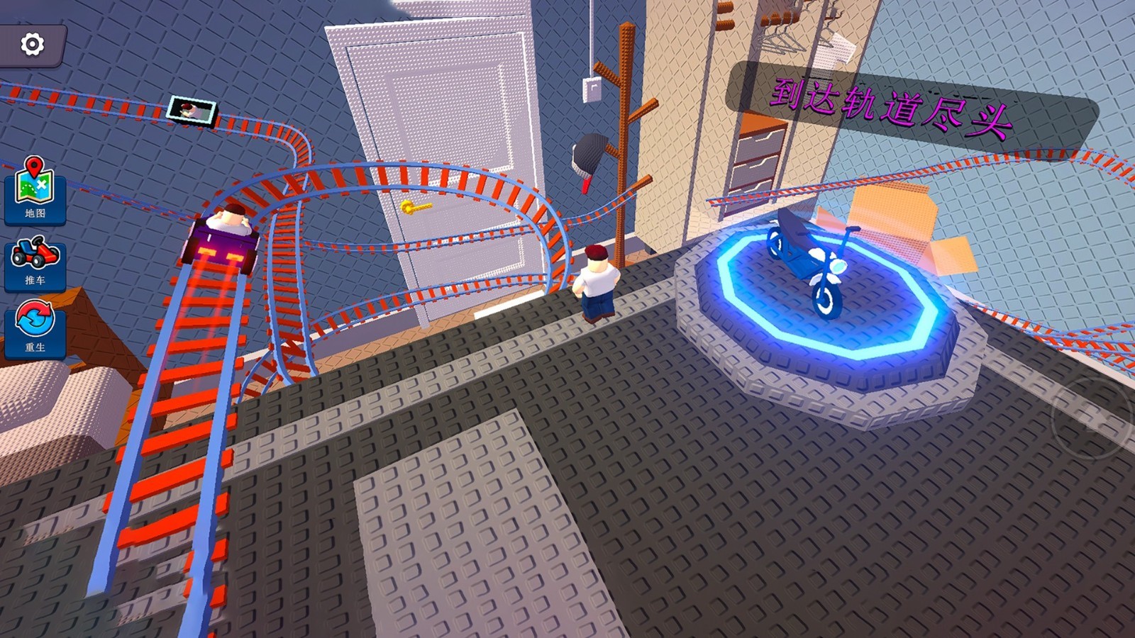 现在玩家需要控制角色左上过山车,在轨道上控制前进速度,成功抵达终点才能够闯关。要注意不能够让角色跌落轨道哦!