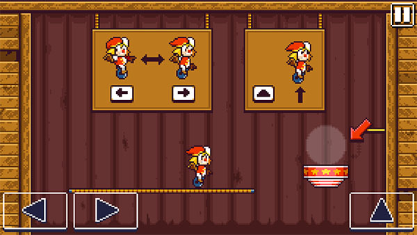 走钢丝剧院这是一款休闲闯关类游戏,游戏采用了像素的画风,你需要控制小丑开始闯关哦,不断的进行走钢丝,考验你的操作技术,游戏里多个关卡可以选择哦,越往后关卡的难度越高哦,带给你最沉浸式的闯关体验哦,喜欢的快来下载吧!
