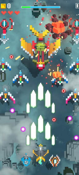 游戏以复古像素风格与现代弹幕设计的完美融合,为玩家带来一场视听与操作的双重盛宴。丰富的战机种类与多变的弹幕风格增加了游戏的耐玩性和策略深度,而动态天气系统与多样化关卡设计则进一步提升了沉浸感。