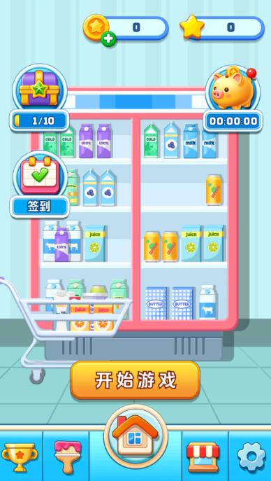 1.玩家只需要推动屏幕,移动容器上不同类型商品的位置,并将三个相同的符号移动到同一个字段,以完成匹配清除。