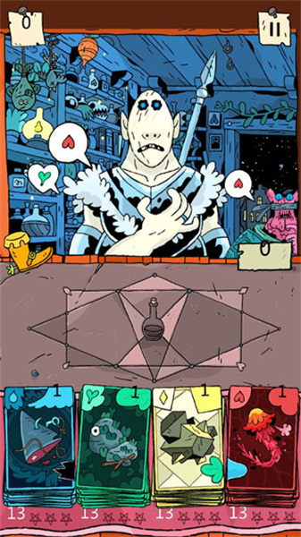 4.享受益智解谜的乐趣,通过卡牌上的色彩线索,进行巧妙的组合与拼接,解锁新药水的秘密。