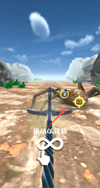 2. 利用屏幕上的瞄准与射击按钮对从四面八方袭来的恐龙或蜘蛛等生物进行快速反击。