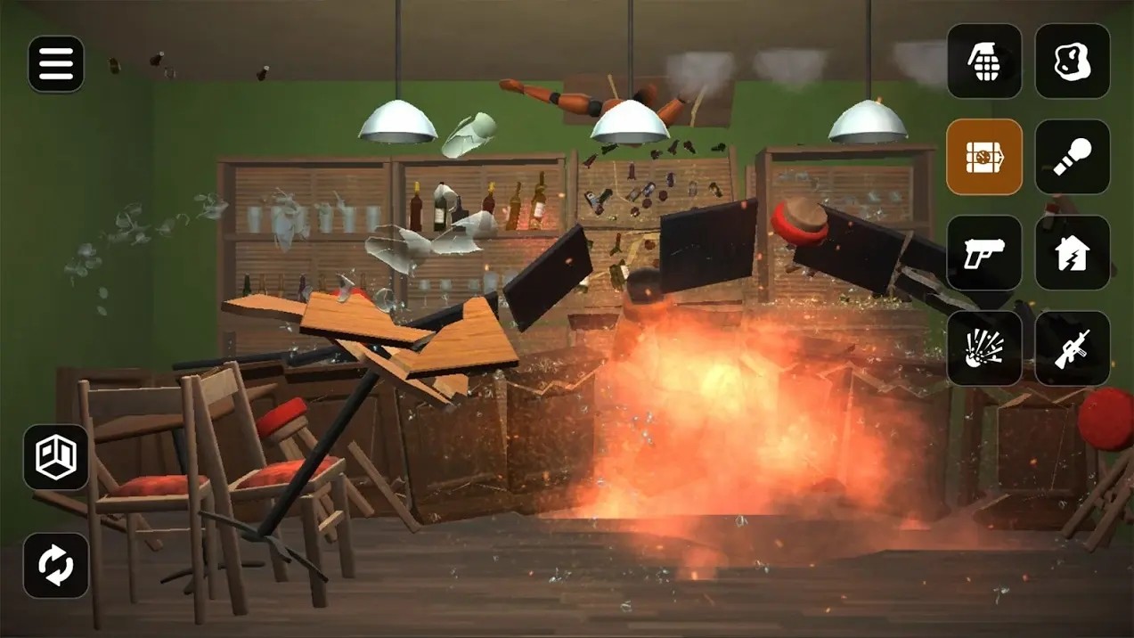 1、房间毁灭模拟器是一个休闲沙箱物理模拟器,包括各种房间和武器来模拟破坏。