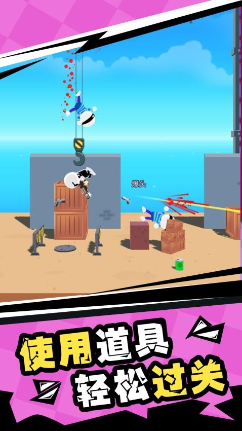 木箱掩体后藏着敌人?钩子、弹药等道具随手用,一键逆转战局,过关像 “开了挂” 一样丝滑~