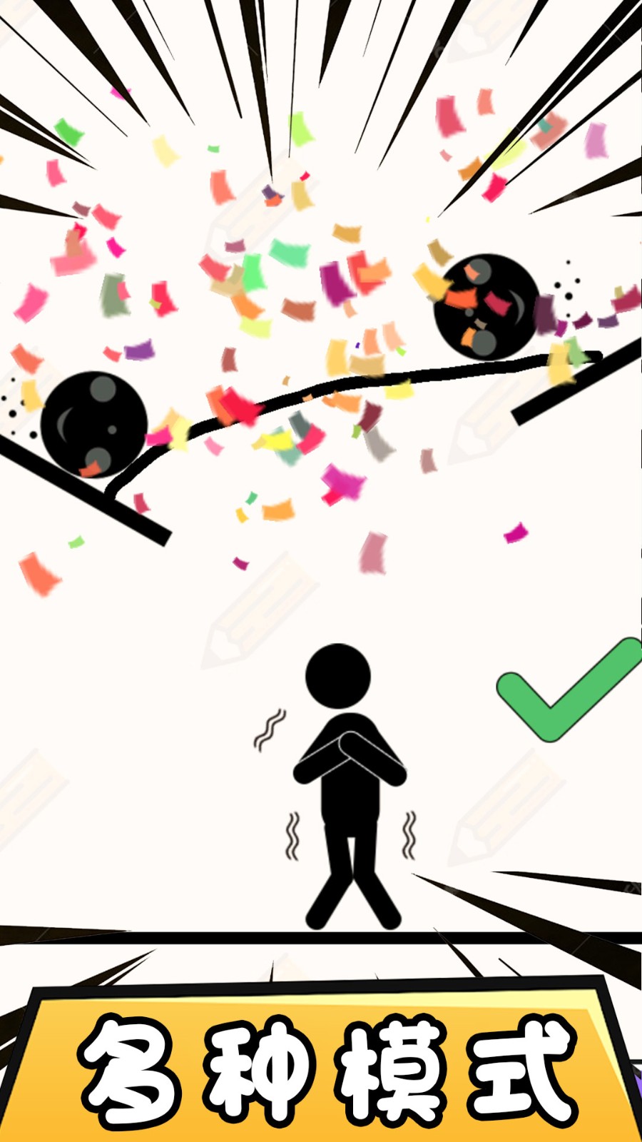 2、采用经典的火柴人画风,场景和角色都由简单的线条和色块构成。这种极简设计去除了所有视觉干扰,将玩家的注意力100%集中在关卡。