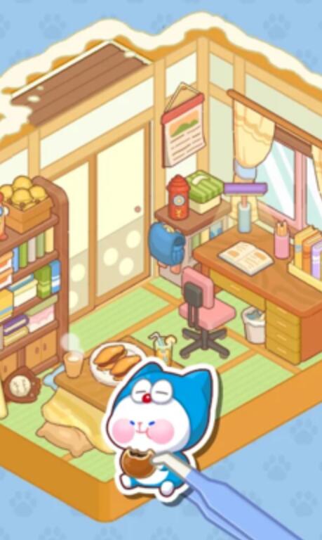 1、查看关卡中待装饰的房间,明确空白区域与需摆放的物品,从下方贴纸库中挑选对应物品,通过点击并拖拽将其放入上方合适空位。