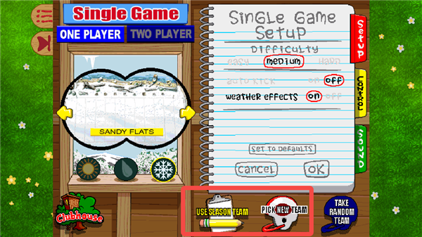 1、单人游戏:在 5 个后院球场和独特的天气条件设置中,玩家可以选择自己的球队、设计队徽,并进行一场即兴比赛!