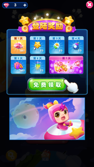 每天上线可以先领取登陆奖励,通过交换相邻的两个糖果,使三个或以上同色糖果连成一线即可消除。每个关卡都有特定目标,如收集指定数量的某种糖果、在步数内达到目标分数或清除所有果冻,需要巧妙规划每一步。除了经典闯关模式,游戏还提供限时挑战、收集模式等。