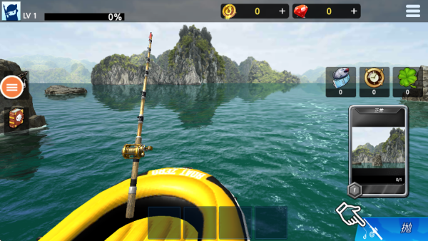 1.点击画面右下角的“抛”来进行投掷钓竿的动作。
