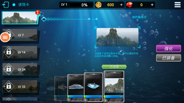 4.玩家可以获取各种诱饵卡,通过合理搭配诱饵卡能够提升我们获取稀有鱼的概率。