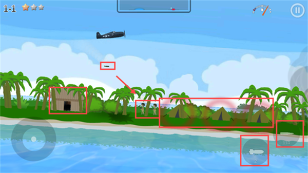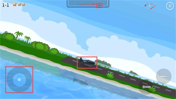 1.玩家通过触摸屏幕左侧区域控制战机的上下左右移动,右侧则有射击按钮和释放特殊技能的功能键。