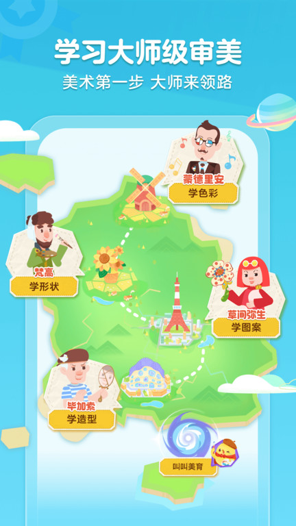 叫叫绘画是一款儿童艺术启蒙的休闲涂色游戏,以趣味涂鸦为核心,融合艺术认知与创意表达,游戏提供海量原创模板,涵盖动物风景奇幻场景等多元主题,搭配专业绘画工具与色彩实验室,支持自由调色笔触切换与特效添加,在轻松涂色中培养孩子审美素养手眼协调与创造力。