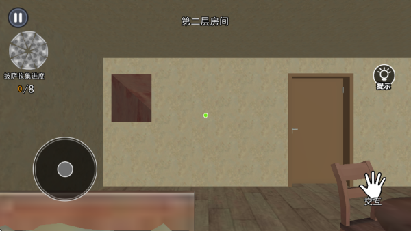 3.随后玩家可以开始自由行动。关注画面左上角的披萨搜集进度,玩家需要探索各个房间来找到披萨碎片。