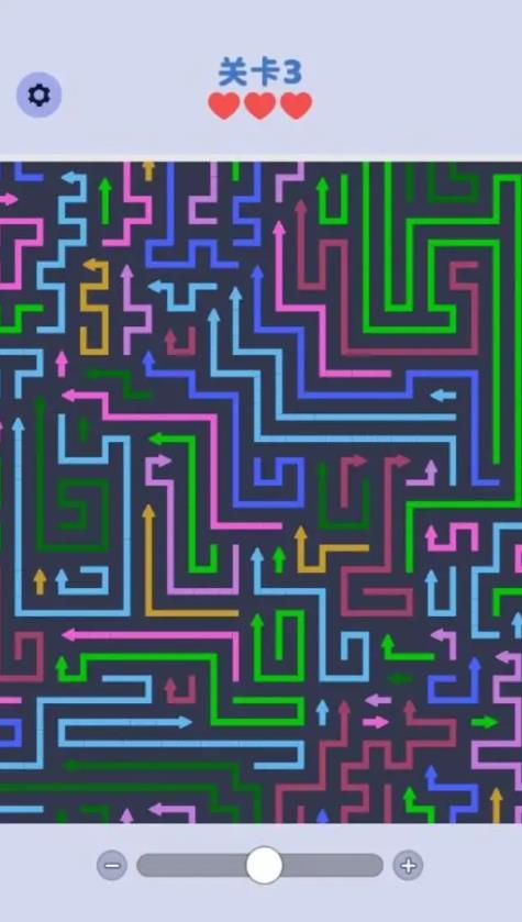 2、点击箭头即可触发消除,只要前方没有阻挡物即可顺利消除,完成全部箭头即视为闯关成功。