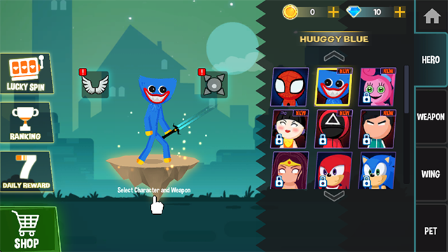2、选择你的火柴人角色,如钢铁侠、鸣人、路飞等任你挑选。