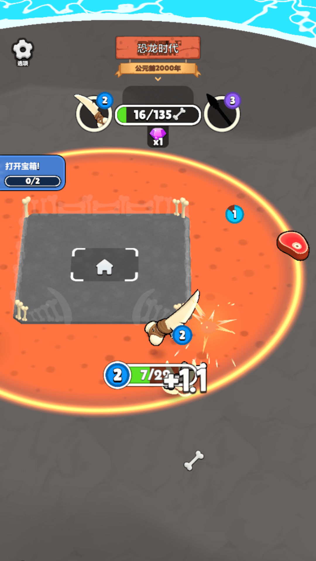 3、通过直接点击左侧的移动按钮,操控“骨头”角色移动并收集关卡中所需的各种资源。
