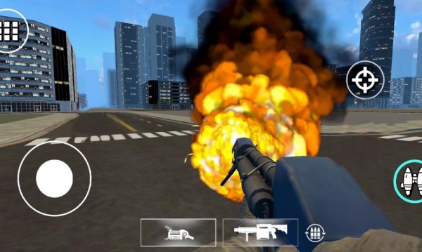 2、使用武器时,可通过界面的武器切换按钮更换枪械类型,借助爆炸类武器触发场景破坏,利用物理效果制造连锁反应。