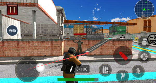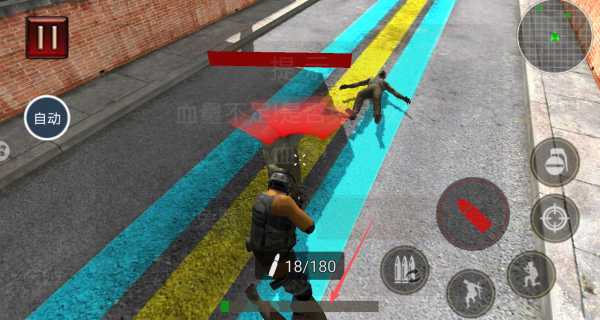 1、点击屏幕右侧的射击按钮可直接开火,目标是将场景中的所有僵尸全部消灭。