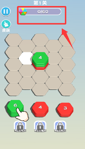 3.长按并拖动红色的六角形色块,将其放置到合适的位置,完成首次消除。