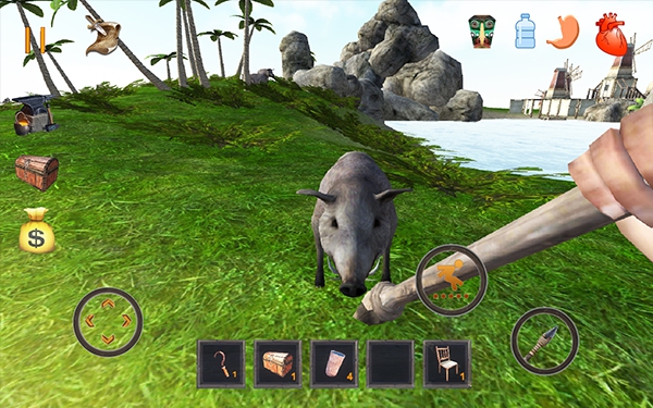 岛屿上有很多动物。您可以狩猎它们并获得自己的食物。他们可以猎杀你!