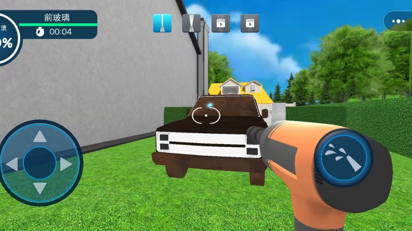 4.使用摇杆可以控制角色的行动,点击右侧的水枪则可以喷射水流进行车身的清洗。