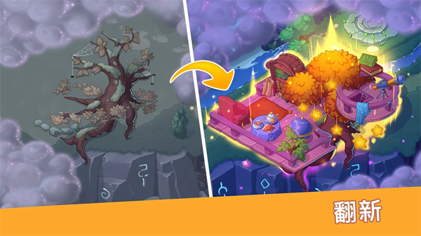 玩家能够将3个及以上的物体进行合并。合并系统是游戏的核心玩法之一,通过将相同类型的物品拖到一起,可以创造出更高级的道具或装饰品。每次合并都会带来意想不到的效果,比如将三个普通花朵合并成一束美丽的花环,或者将几块木板变成精致的家具。合并不仅能解锁新物品,还能帮助玩家更快完成任务。