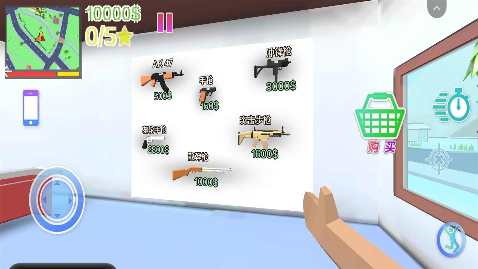 4.点击画面左侧的手机图标,玩家可以在手机中解锁汽车、购物、查看地图,还能够保存游戏进度,方便退出后再次玩耍。
