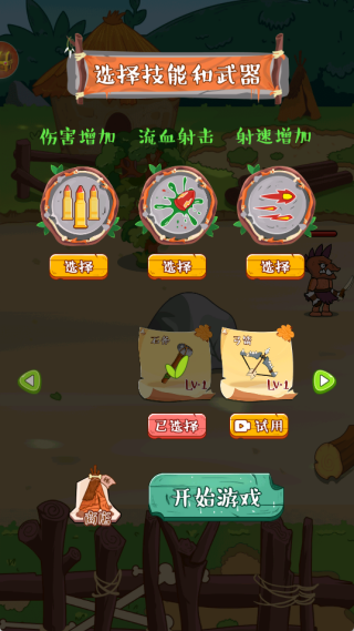 1、开局可以选择技能和武器,每种武器都能带来新的战斗效果,开启全新的生存之旅。