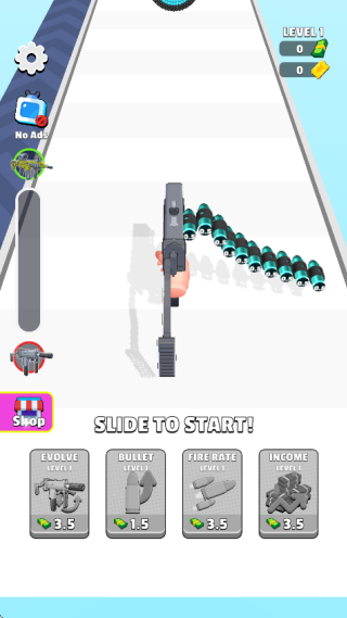 3.终点设密集障碍物群,需凭借强化后的子弹击碎目标,击碎数量关联钞票收益,用于解锁新枪械。