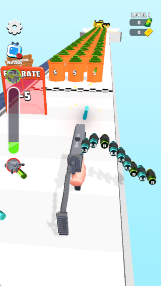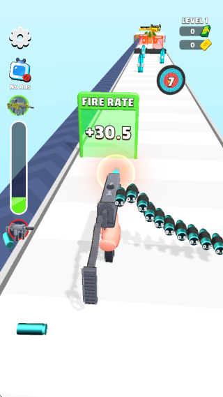 2.玩家通过操控手枪在关卡中行进,目标是在抵达终点前强化子弹性能,突破障碍并积累资源。