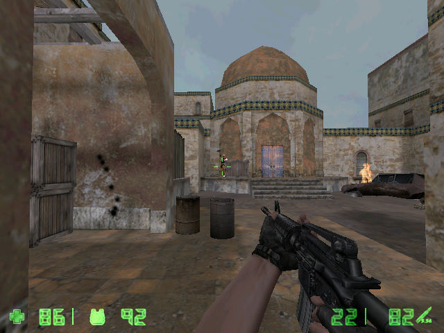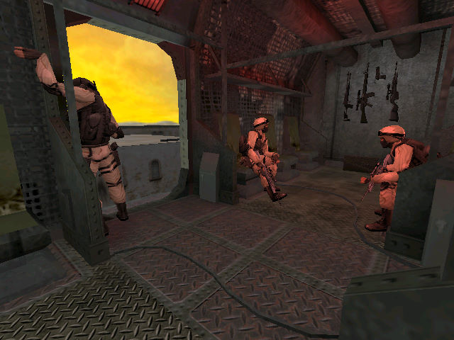 会议室里面长官正在给我们部署作战计划:红色警报,立即解除核武器!逼近敌军控制区域后,我拿出了探测仪发现大楼外面只有两个游动哨兵,闪身躲进院中堆放的木箱中间,再仔细观察,当其中一个走进了大楼而另外一个正好巡逻到另一端的时候,快步冲进大楼隐藏起来,千万不要惊动任何敌人,不然...从一个小通道爬过去,外面也有哨兵在四处巡逻,找准时机,快步来到对面大楼下面,沿梯子攀上大楼,我停下来,旁边的房间传来敌人哨兵的呼噜声,将门锁烧掉,响声惊醒了熟睡的敌兵,我立即多了起来,然后进入房间,不要惊动通道上守卫的敌兵,墙上有通风口钻进去,拿出探测仪观察,下面有两个敌兵,看来是老乡,摆谈得相当火热,完全当我不存在,汗!等两个过去后,溜下来进入旁边的小门,里面有个敌兵怀抱枪支正在梦周公,注意脚下的528,在从通风口过去,关掉电源,从木箱跳过铁门,上楼,二楼有敌兵,嘿嘿!又在昏睡,我暗想:今天真走运,关键地方,无人把守!进入室内,可以透过玻璃看到下面的敌兵正在战前动员,我立即用相机将下面的情况拍了下来,队友就已经冲了进来,下面立即变成激烈的战场,看来我地立即下去,正好有两个敌兵撞上了我的枪口,那就对不起了...下来和队友汇合后,一股敌兵从旁边的大门冲了出来,好在我们训练有素,全部歼灭!我又赶过去支援另外一队小组,正往前突袭,突然敌军的一辆坦克冲了过来,炮声中,我军伤亡惨重,手中没有重武器,得四处找找,从下水道上来,终于找到火箭筒,来吧!狗X的!轰隆隆...一道铁门挡住了去路,好在旁边有一个铁箱可以推过来垫脚,进入一个房间,木柜后面有暗门,一路前进,来到有雕像的院子,敌人蜂拥冲了过来,我奋力抵抗,正在这危急时刻,空中支援及时赶到,将敌人全部歼灭!沿路往前搜索,终于在一座大楼发现了敌人残存势力,而且正要引爆核武器,幸亏我及时赶到,愤怒中我将手中全部打在敌将领身上,按动E键不放撤出了核武器的引爆装置,安全了...难点提示:无路时箱子可以推动