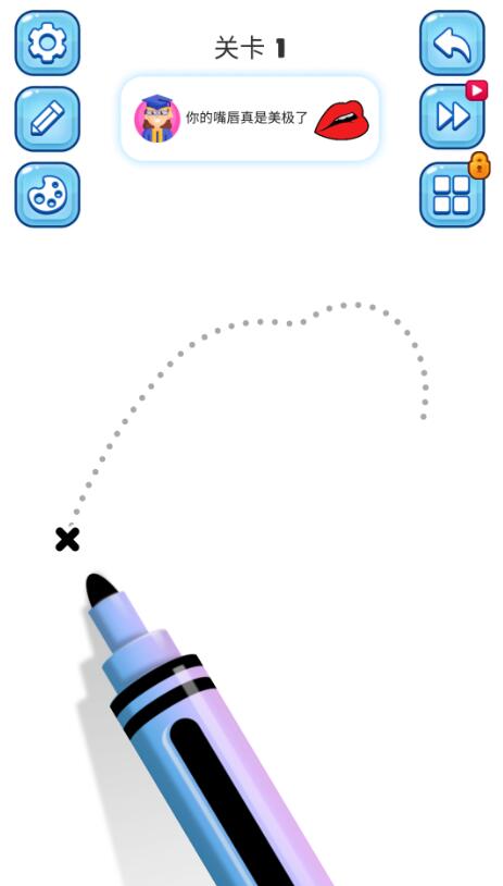 1、进入关卡后,观察界面中的虚线轮廓,操作画笔沿虚线轨迹完整绘制,确保线条贴合虚线走向,这样能精准还原目标图案的轮廓。