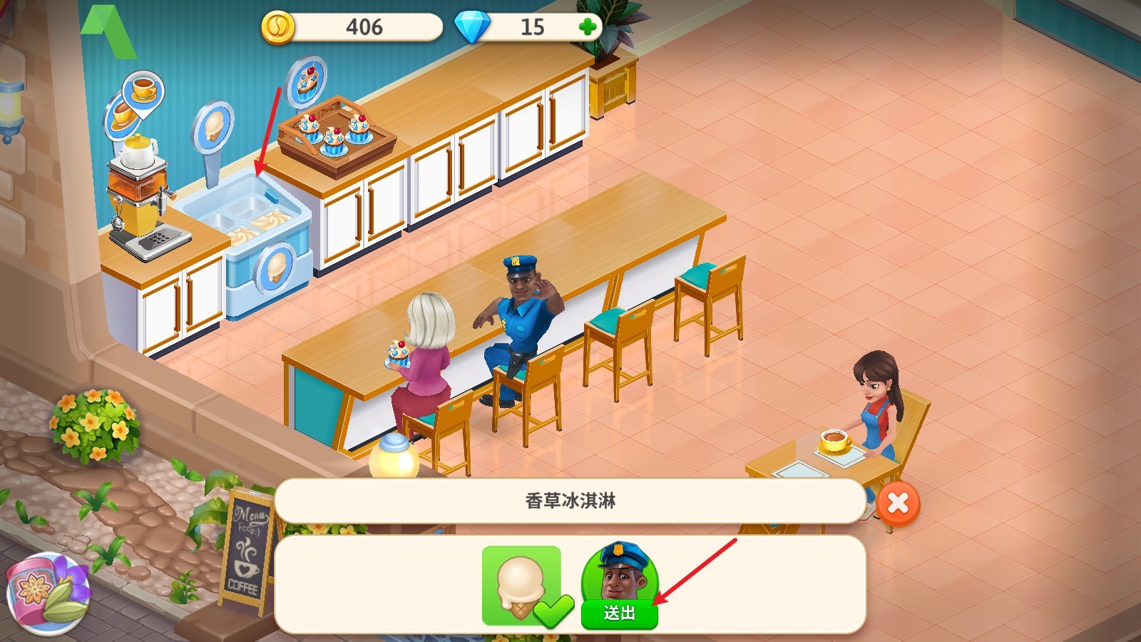 1.游戏初期会引导玩家学习基础操作,如制作饮品、服务顾客等,能获得金币、钻石等初始资源,用于购买基础设备和装饰。