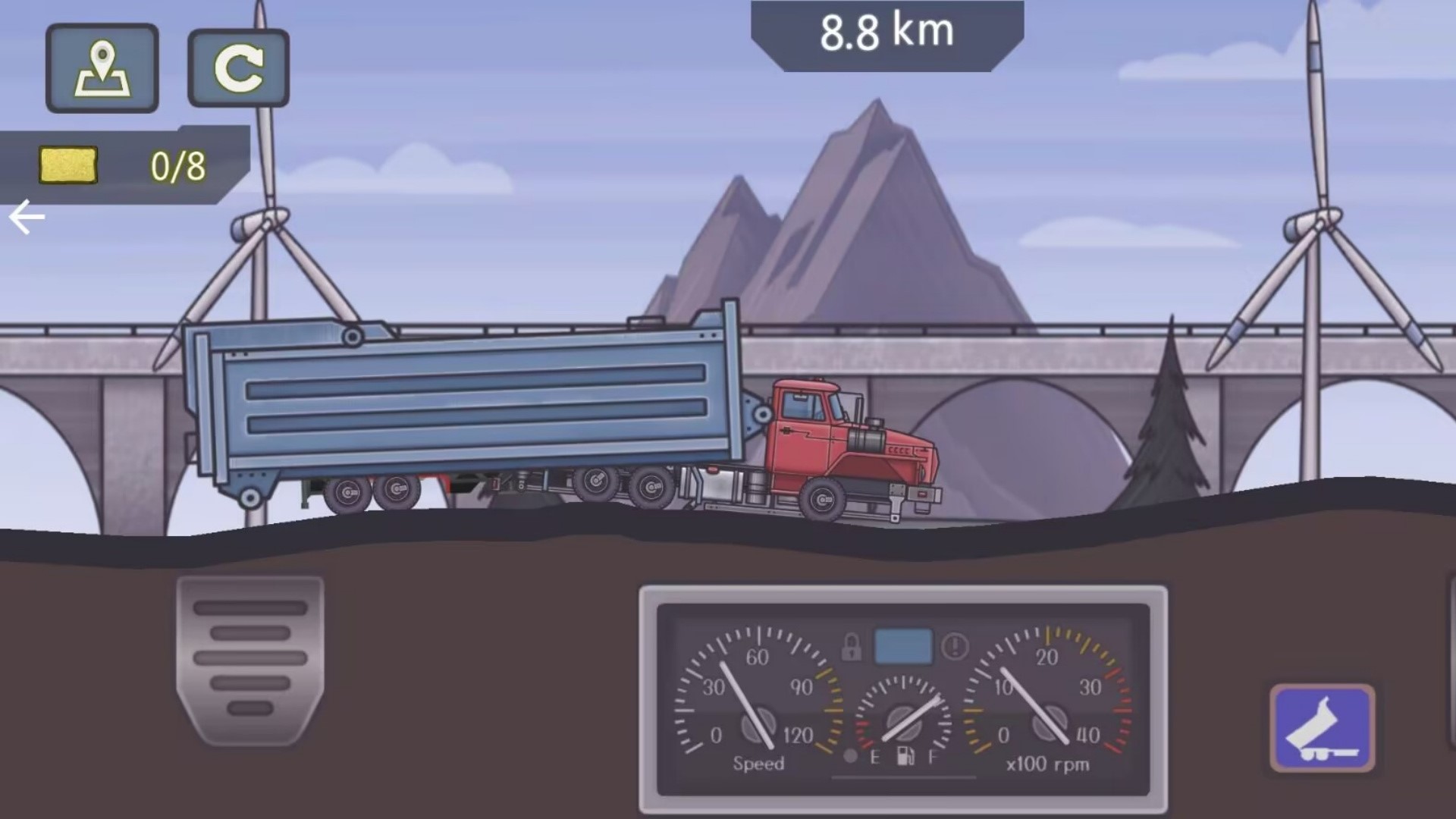 1.本作以横版驾驶为核心框架,采用2D卡通风格呈现,画面简洁清晰,兼顾辨识度与视觉舒适感。